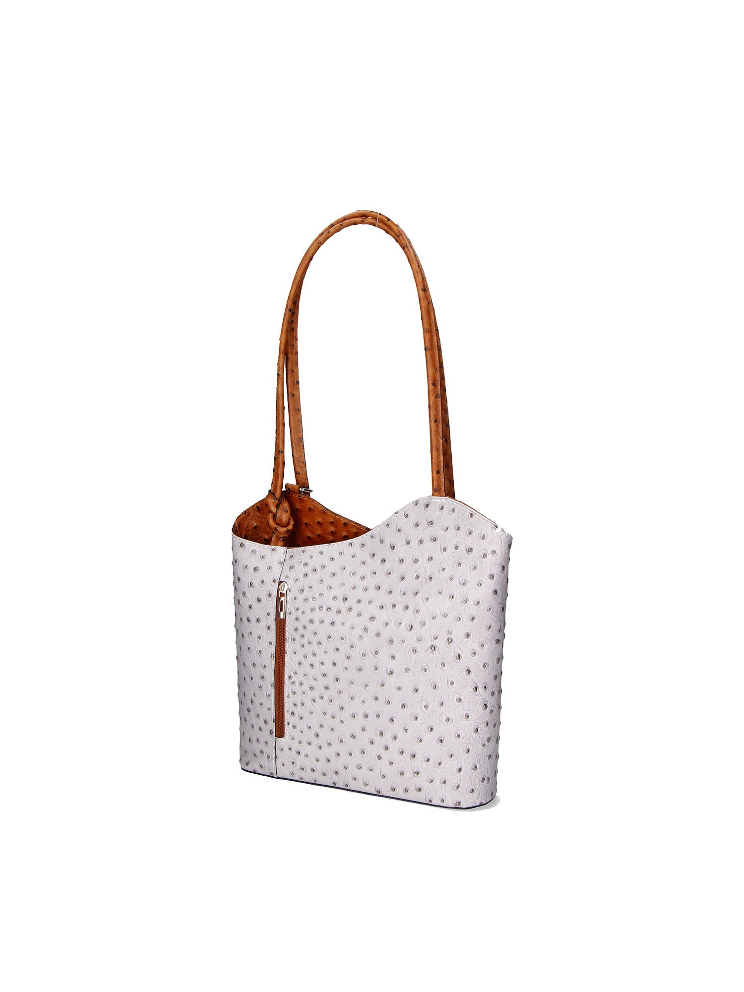 Borsa da donna con in manici e convertibile in zaino in vera pelle stampa struzzo. prodotto artigianale italiano. Made in Italy