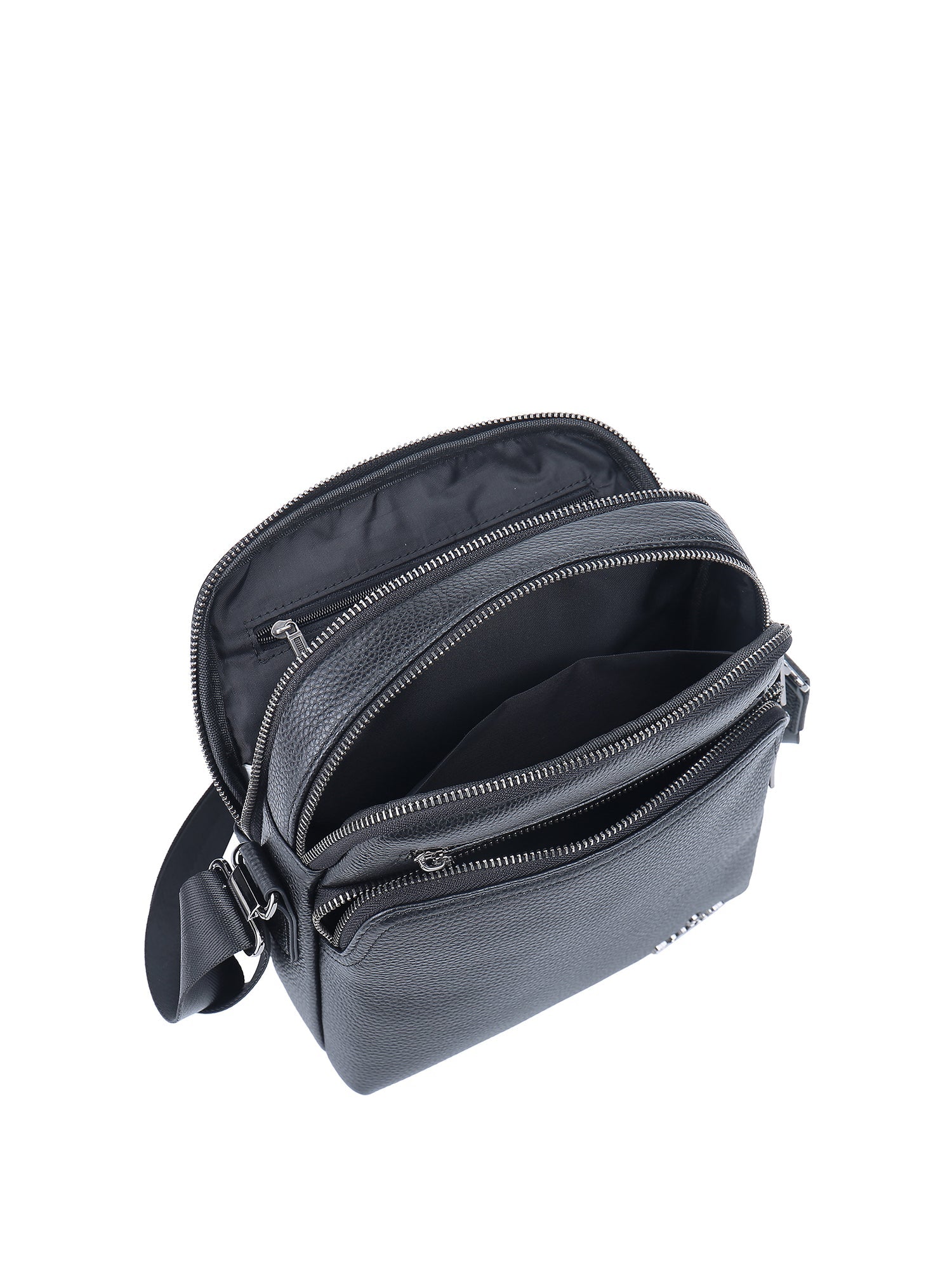 Borsa a tracolla da uomo. La chiusura è con zip. Le tasche interne sono una con zip e due aperte. Le tasche esterne sono due anteriore con zip e una posteriore con zip. La tracolla è regolabile in tessuto. Il manico è assente. Gli scomparti interni sono uno. Il materiale esterno è 100% Vera Pelle. Internamente è foderato in poliestere. Misure: 22x25x9 cm . Prodotto Fashion